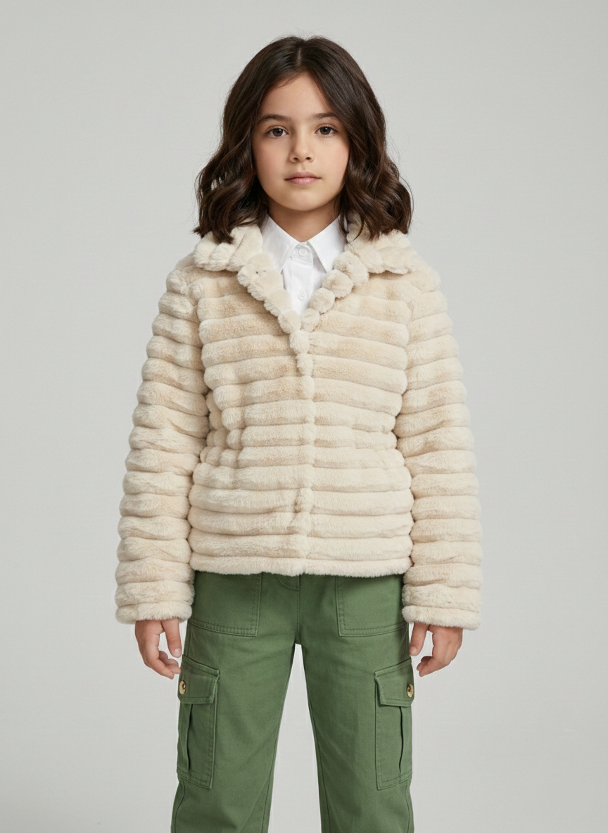 عارفين إن الشتا يعني “لَبس كتير وتقُل”، بس مع جاكيت الفرو المضلع الجديد، المعادلة اتغيرت! الجاكيت ده مش مجرد قطعة لبس، ده “حضن دافي” لبنتك في عز البرد.