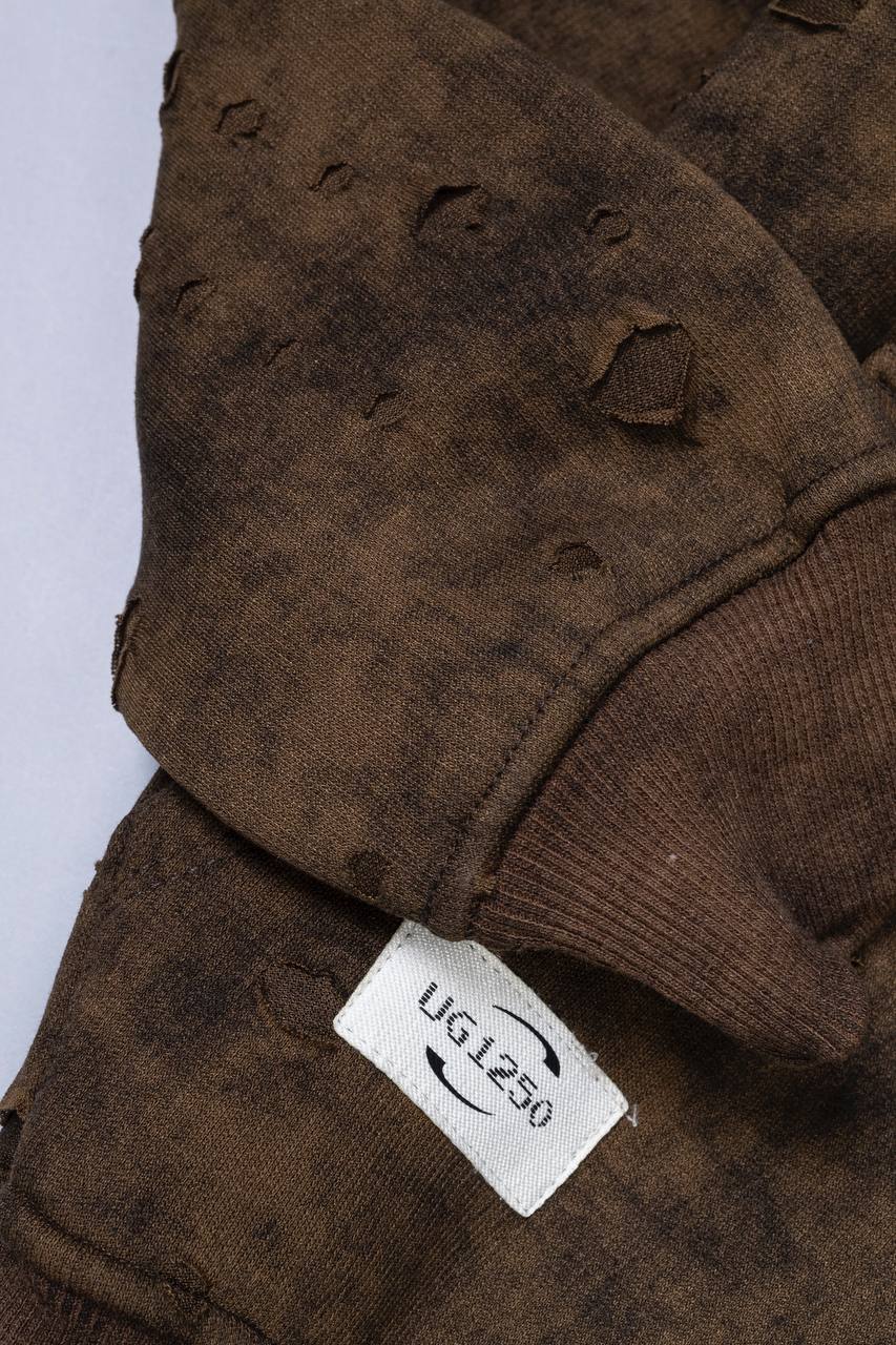 يتميز هذا السويت شيرت بتصميم فريد يجمع بين الخامة المحبوكة المضلعة والنقش العشوائي (المشابه لطبعة “السبلاش” أو الرخام) مما يمنحه مظهراً عصرياً وجذاباً يختلف عن القطع التقليدية.